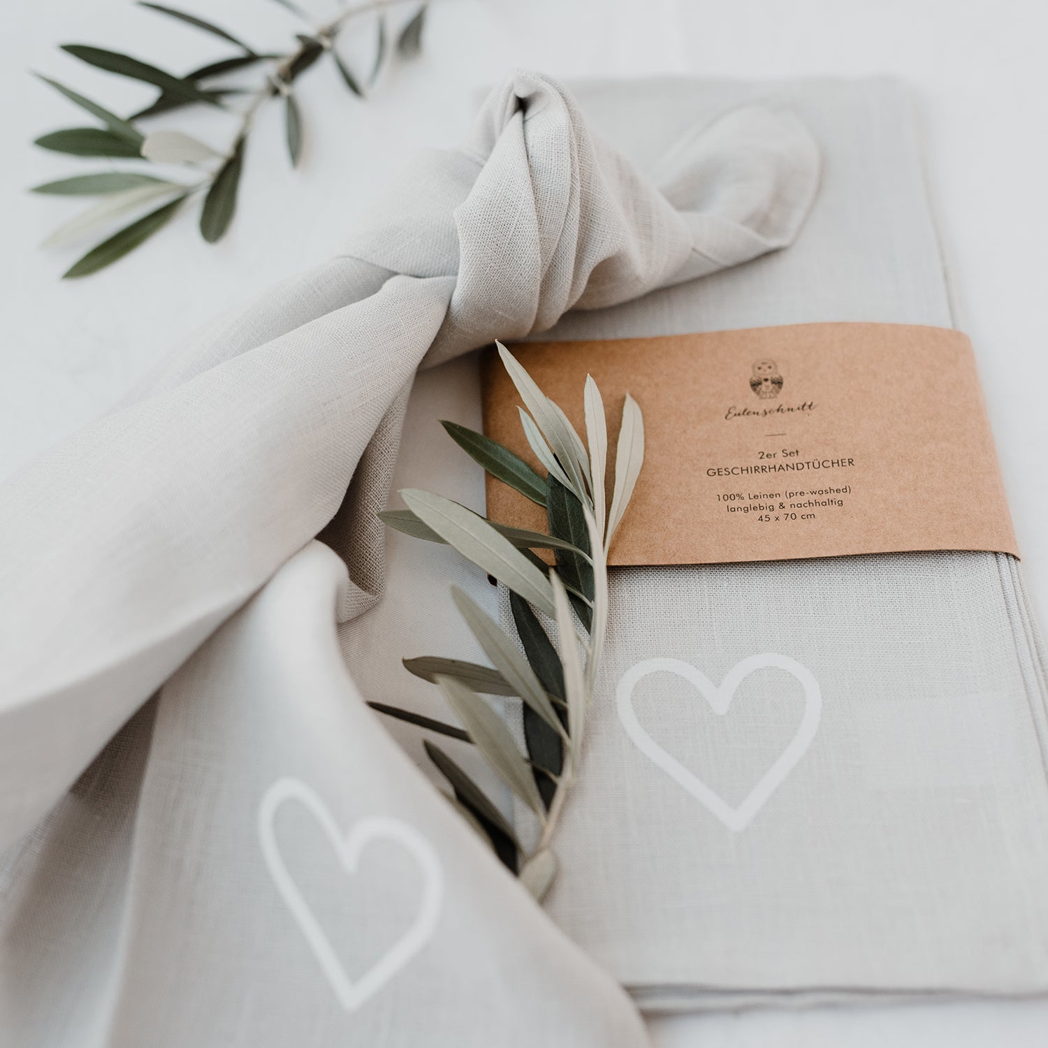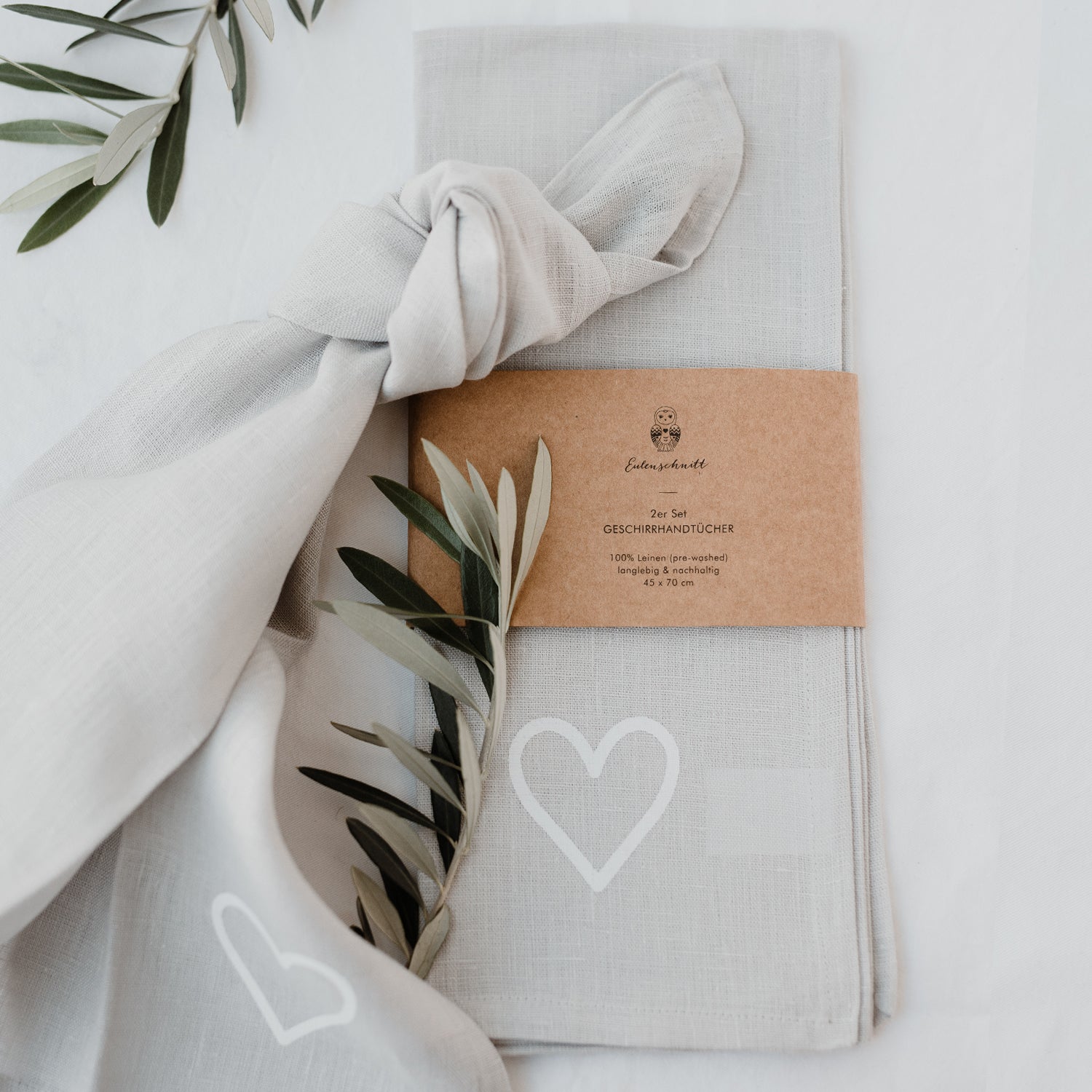 Geschirrtücher aus Leinen mit weißem Herz | 2er Set