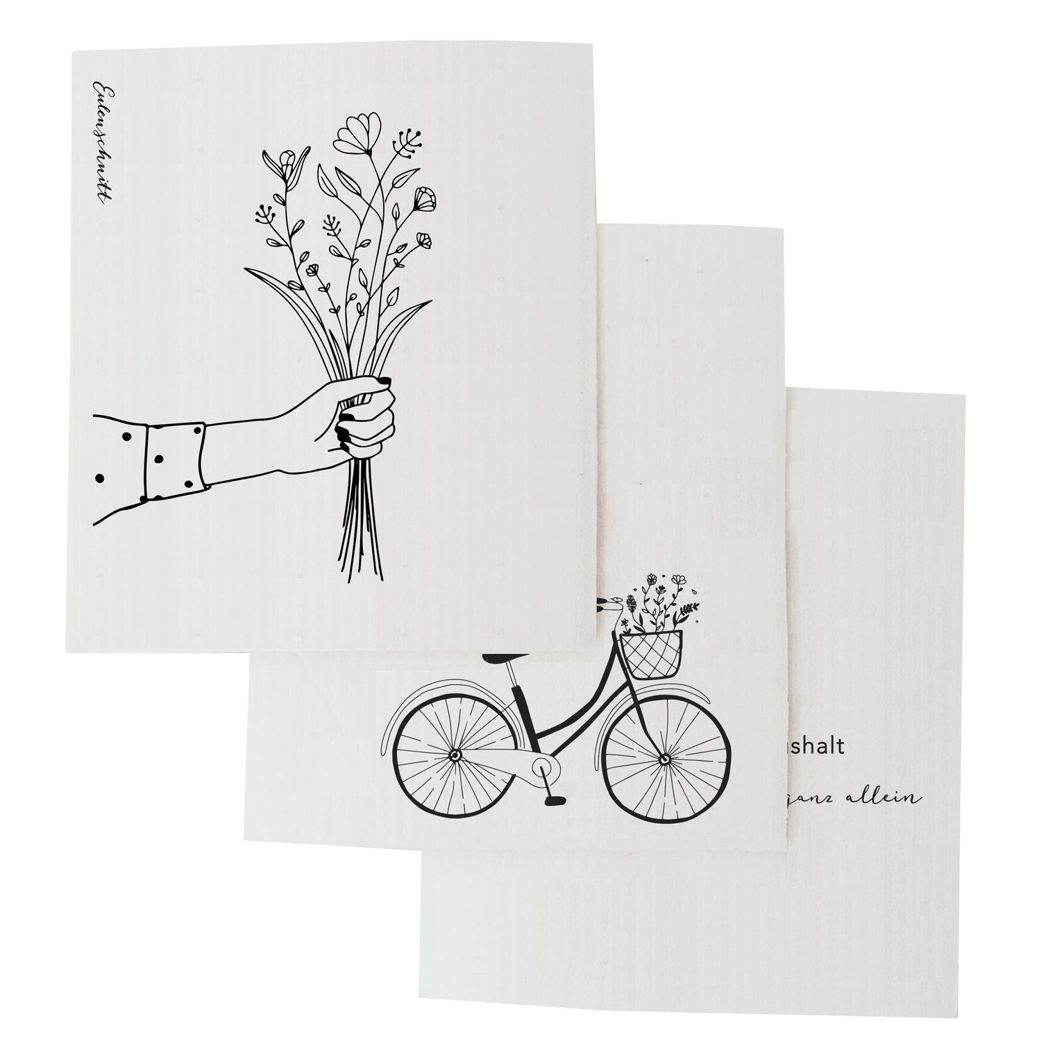 Die Schwammtücher Blumenliebe sind nicht nur optisch ein echtes Highlight, sondern sind durch ihr besonderes Material auch besonders saugfähig und fusselfrei. Alle Schwammtücher werden von uns designt und in Deutschland für uns hergestellt und bedruckt. Aber damit nicht genug: unsere Schwammtücher sind ein reines Naturprodukt, denn sie bestehen aus einem Materialmix aus 70% Cellulose und 30% Baumwolle. Sie sind zudem bei bis zu 95 Grad waschbar, kompostierbar und fördern damit jeden nachhaltigen Lebensstil. Da sie im attraktiven 3er Set kommen, kannst Du die Schwammtücher Blumenliebe auch super verschenken, denn über einen liebevoll designten Küchenhelfer, welcher auch noch gut für die Umwelt ist, freut sich doch jeder!